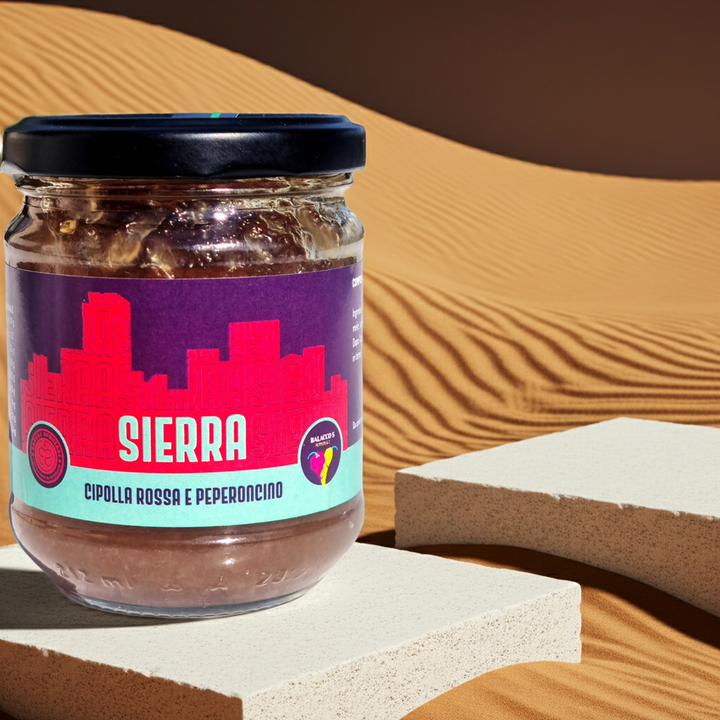 Sierra è una composta speziata che unisce la dolcezza naturale della cipolla rossa con il carattere del peperoncino. Perfetta per accompagnare formaggi, salumi e piatti di carne, questa preparazione artigianale esalta i sapori con un equilibrio sofisticato tra note caramellate e un finale deciso. Ideale per chi apprezza condimenti versatili che trasformano ogni portata in un'esperienza culinaria consapevole.